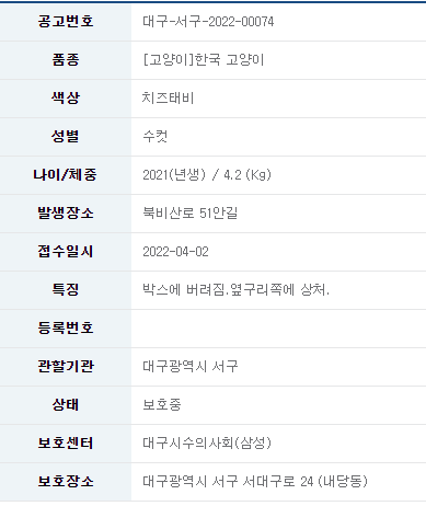 카테고리 없음 22/04/04_유기묘 입양 소식_대구 서구#1 by 나좀데려가개_경북 2022. 4. 3. 유기묘 무료 분양 정보 공유드립니다. 분양 받고자 하시면 아래 링크를 참조해주세요. 유기묘 입양 정보 바로가기 오늘도 새로운 가족을 기다리는 유기묘들이 많이 있습니다. 보다 좋은 환경에서 좋은 가족을 만날 수 있도록 부탁드립니다. 공유하기 게시글 관리 나좀데려가개_경북 저작자표시 비영리 동일조건 (새창열림) 댓글