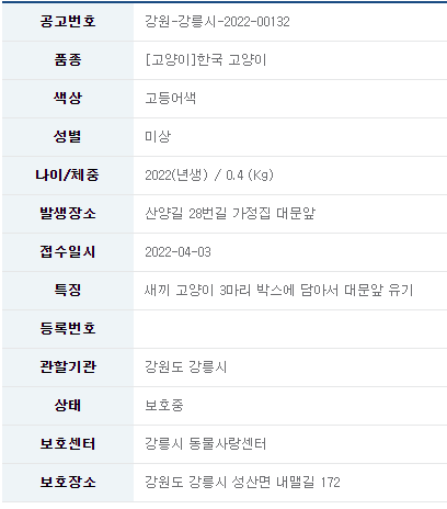 카테고리 없음 22/04/04_유기묘 입양 소식_강원 강릉#1 by 나좀데려가개_경북 2022. 4. 3. 유기묘 무료 분양 정보 공유드립니다. 분양 받고자 하시면 아래 링크를 참조해주세요. 유기묘 입양 정보 바로가기 오늘도 새로운 가족을 기다리는 유기묘들이 많이 있습니다. 보다 좋은 환경에서 좋은 가족을 만날 수 있도록 부탁드립니다. 공유하기 게시글 관리 나좀데려가개_경북 저작자표시 비영리 동일조건 (새창열림) 댓글