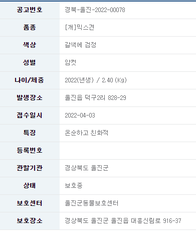 카테고리 없음 22/04/04_유기견 입양 소식_울진#3 by 나좀데려가개_경북 2022. 4. 3. 유기견 무료 분양 정보 공유드립니다. 분양 받고자 하시면 아래 링크를 참조해주세요. 유기견 입양 정보 바로가기 오늘도 새로운 가족을 기다리는 유기견들이 많이 있습니다. 보다 좋은 환경에서 좋은 가족을 만날 수 있도록 부탁드립니다. 공유하기 게시글 관리 나좀데려가개_경북 저작자표시 비영리 동일조건 (새창열림) 댓글