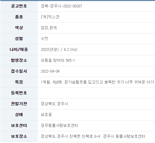 카테고리 없음 22/04/05_유기견 입양 소식_경주#7 by 나좀데려가개_경북 2022. 4. 4. 유기견 무료 분양 정보 공유드립니다. 분양 받고자 하시면 아래 링크를 참조해주세요. 유기견 입양 정보 바로가기 오늘도 새로운 가족을 기다리는 유기견들이 많이 있습니다. 보다 좋은 환경에서 좋은 가족을 만날 수 있도록 부탁드립니다. 공유하기 게시글 관리 나좀데려가개_경북 저작자표시 비영리 동일조건 (새창열림) 댓글