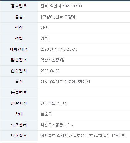 카테고리 없음 22/04/05_유기묘 입양 소식_전북 익산#6 by 나좀데려가개_경북 2022. 4. 4. 유기묘 무료 분양 정보 공유드립니다. 분양 받고자 하시면 아래 링크를 참조해주세요. 유기묘 입양 정보 바로가기 오늘도 새로운 가족을 기다리는 유기묘들이 많이 있습니다. 보다 좋은 환경에서 좋은 가족을 만날 수 있도록 부탁드립니다. 공유하기 게시글 관리 나좀데려가개_경북 저작자표시 비영리 동일조건 (새창열림) 댓글