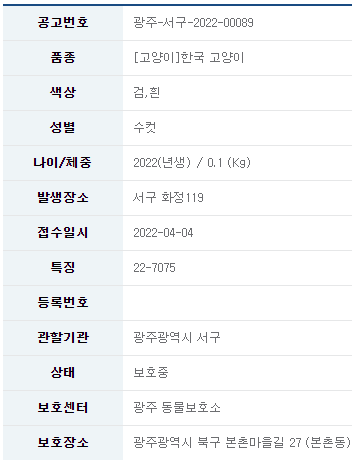 카테고리 없음 22/04/05_유기묘 입양 소식_광주 서구#4 by 나좀데려가개_경북 2022. 4. 4. 유기묘 무료 분양 정보 공유드립니다. 분양 받고자 하시면 아래 링크를 참조해주세요. 유기묘 입양 정보 바로가기 오늘도 새로운 가족을 기다리는 유기묘들이 많이 있습니다. 보다 좋은 환경에서 좋은 가족을 만날 수 있도록 부탁드립니다. 공유하기 게시글 관리 나좀데려가개_경북 저작자표시 비영리 동일조건 (새창열림) 댓글