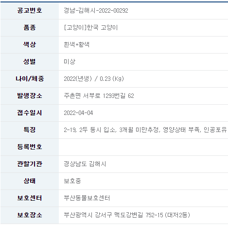 카테고리 없음 22/04/06_유기묘 입양 소식_경남 김해#1 by 나좀데려가개_경북 2022. 4. 5. 유기묘 무료 분양 정보 공유드립니다. 분양 받고자 하시면 아래 링크를 참조해주세요. 유기묘 입양 정보 바로가기 오늘도 새로운 가족을 기다리는 유기묘들이 많이 있습니다. 보다 좋은 환경에서 좋은 가족을 만날 수 있도록 부탁드립니다. 공유하기 게시글 관리 나좀데려가개_경북 저작자표시 비영리 동일조건 (새창열림) 댓글