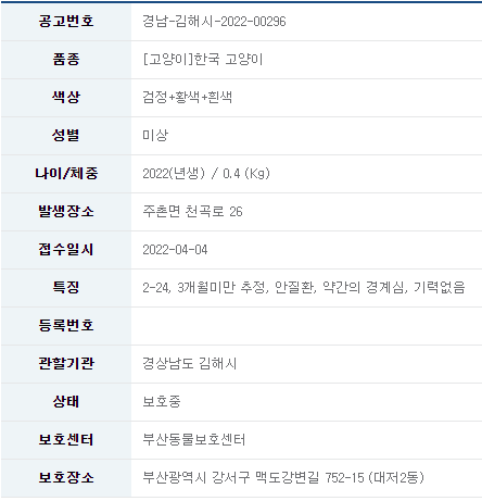 카테고리 없음 22/04/06_유기묘 입양 소식_경남 김해#2 by 나좀데려가개_경북 2022. 4. 5. 유기묘 무료 분양 정보 공유드립니다. 분양 받고자 하시면 아래 링크를 참조해주세요. 유기묘 입양 정보 바로가기 오늘도 새로운 가족을 기다리는 유기묘들이 많이 있습니다. 보다 좋은 환경에서 좋은 가족을 만날 수 있도록 부탁드립니다. 공유하기 게시글 관리 나좀데려가개_경북 저작자표시 비영리 동일조건 (새창열림) 댓글