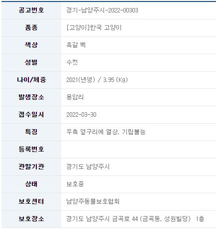 카테고리 없음 22/3/31_유기묘 입양 소식_경기 남양주 by 나좀데려가개_경북 2022. 3. 30. 유기묘 무료 분양 정보 공유드립니다. 분양 받고자 하시면 아래 링크를 참조해주세요. 유기묘 입양 정보 바로가기 오늘도 새로운 가족을 기다리는 유기묘들이 많이 있습니다. 보다 좋은 환경에서 좋은 가족을 만날 수 있도록 부탁드립니다. 공유하기 게시글 관리 나좀데려가개_경북 저작자표시 비영리 동일조건 (새창열림) 댓글