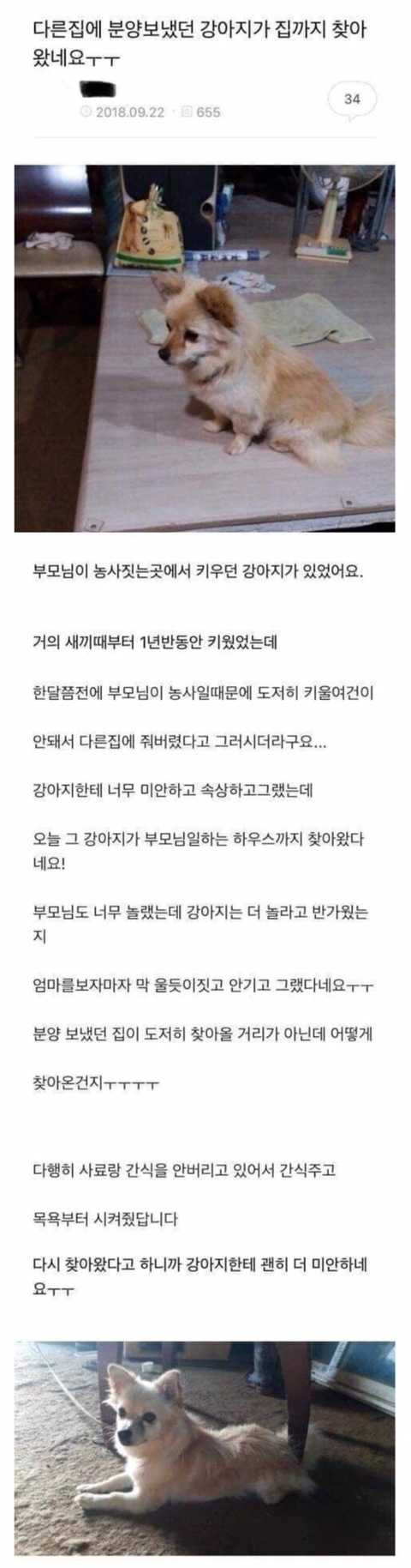 카테고리 없음 다른 집으로 분양 보냈던 강아지가 집까지 찾아왔네요ㅠㅠ by 나좀데려가개_경북 2022. 3. 30. 반려견은 가족입니다. 가족을 잊지 않습니다. 공유하기 게시글 관리 나좀데려가개_경북 저작자표시 비영리 동일조건 (새창열림) 댓글