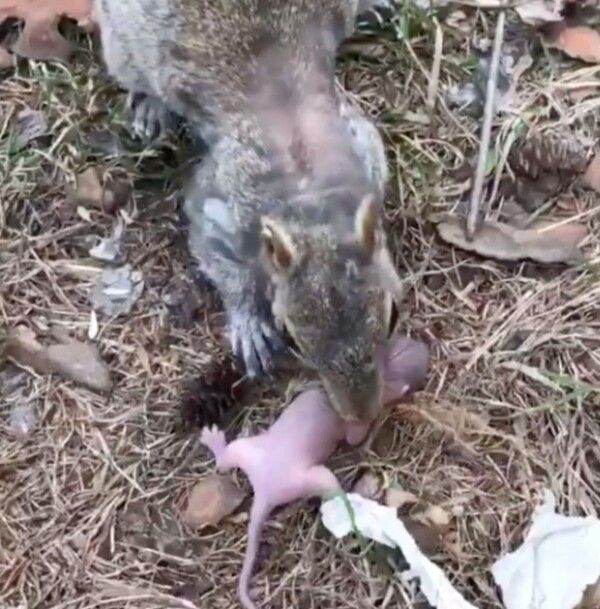 아기 다람쥐를 내려주자 어미 다람쥐는 얼른 아기를 물고 다른 둥지로 이동했다고 합니다.