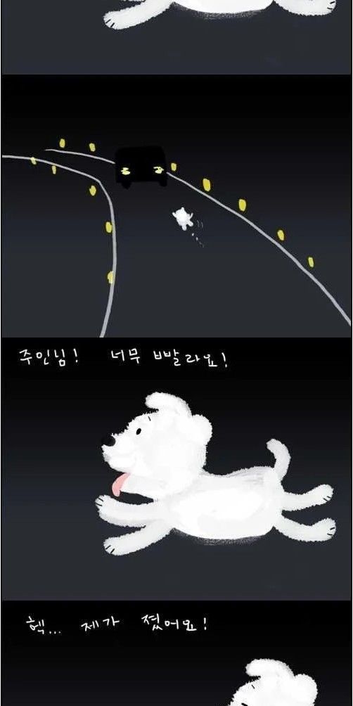 도로위에 버려진 개들은 차가와도 피하지도 않고 사람을 하나하나 확인합니다. 주인일까봐..