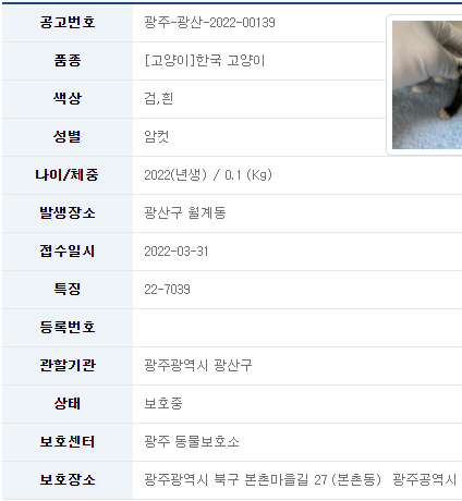카테고리 없음 22/04/01_유기묘 입양 소식_광주 광산 by 나좀데려가개_경북 2022. 3. 31. 유기묘 무료 분양 정보 공유드립니다. 분양 받고자 하시면 아래 링크를 참조해주세요. 유기묘 입양 정보 바로가기 오늘도 새로운 가족을 기다리는 유기묘들이 많이 있습니다. 보다 좋은 환경에서 좋은 가족을 만날 수 있도록 부탁드립니다. 공유하기 게시글 관리 나좀데려가개_경북 저작자표시 비영리 동일조건 (새창열림) 댓글