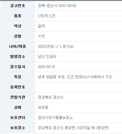 22/04/01_유기견 입양 소식_경산