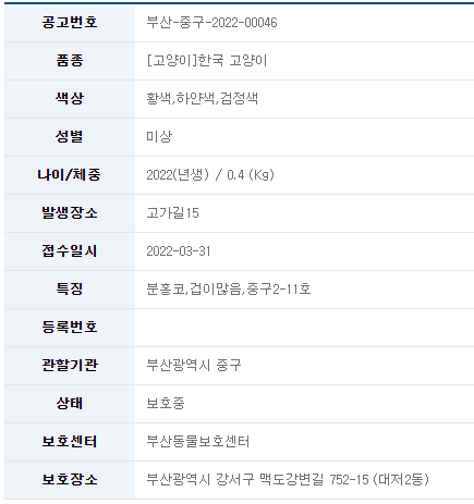 카테고리 없음 22/04/02_유기묘 입양 소식_부산 중구#1 by 나좀데려가개_경북 2022. 4. 1. 유기묘 무료 분양 정보 공유드립니다. 분양 받고자 하시면 아래 링크를 참조해주세요. 유기묘 입양 정보 바로가기 오늘도 새로운 가족을 기다리는 유기묘들이 많이 있습니다. 보다 좋은 환경에서 좋은 가족을 만날 수 있도록 부탁드립니다. 공유하기 게시글 관리 나좀데려가개_경북 저작자표시 비영리 동일조건 (새창열림) 댓글